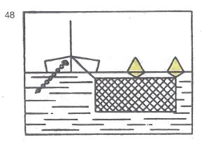 | Fischereifahrzeuge, Kleinfahrzeuge eingeschlossen, die ihre Netze oder Ausleger im Fahrwasser oder in dessen Nähe ausgelegt haben, müssen beim Stilliegen bei Nacht führen: | |||