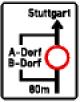 | 70 | Erläuterung jedoch nur mit Entfernungsangabe auf einem Zusatzzeichen und bei Bedarf mit Zielangabe auf einem zusätzlichen Schild über dem Zeichen. Soll die Ankündigung nur für bestimmte Verkehrsarten gelten, sind diese auf einem Zusatzzeichen über dem Zeichen angegeben. | |