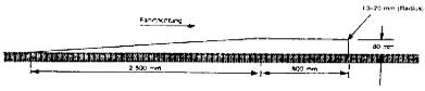 mit geringer Geschwindigkeit (5 km/h ± 1 km/h) über eine Schwelle von 80 mm Höhe mit dem in Abbildung 1 gezeigten Profil gefahren werden; auf Frequenz und Dämpfung ist die kurzzeitige Schwingung zu untersuchen, die sich ergibt, nachdem die Räder an der Antriebsachse die Schwelle wieder verlassen haben; oder