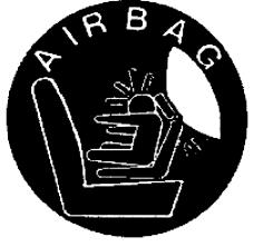Anmerkungen: Das Piktogramm ist rot. Sitz, Kindersitz und Umrandung des Airbags sind schwarz. Das Wort Airbag und der Airbag sind weiß. Der Durchmesser des Piktogramms beträgt mindestens 60 mm.