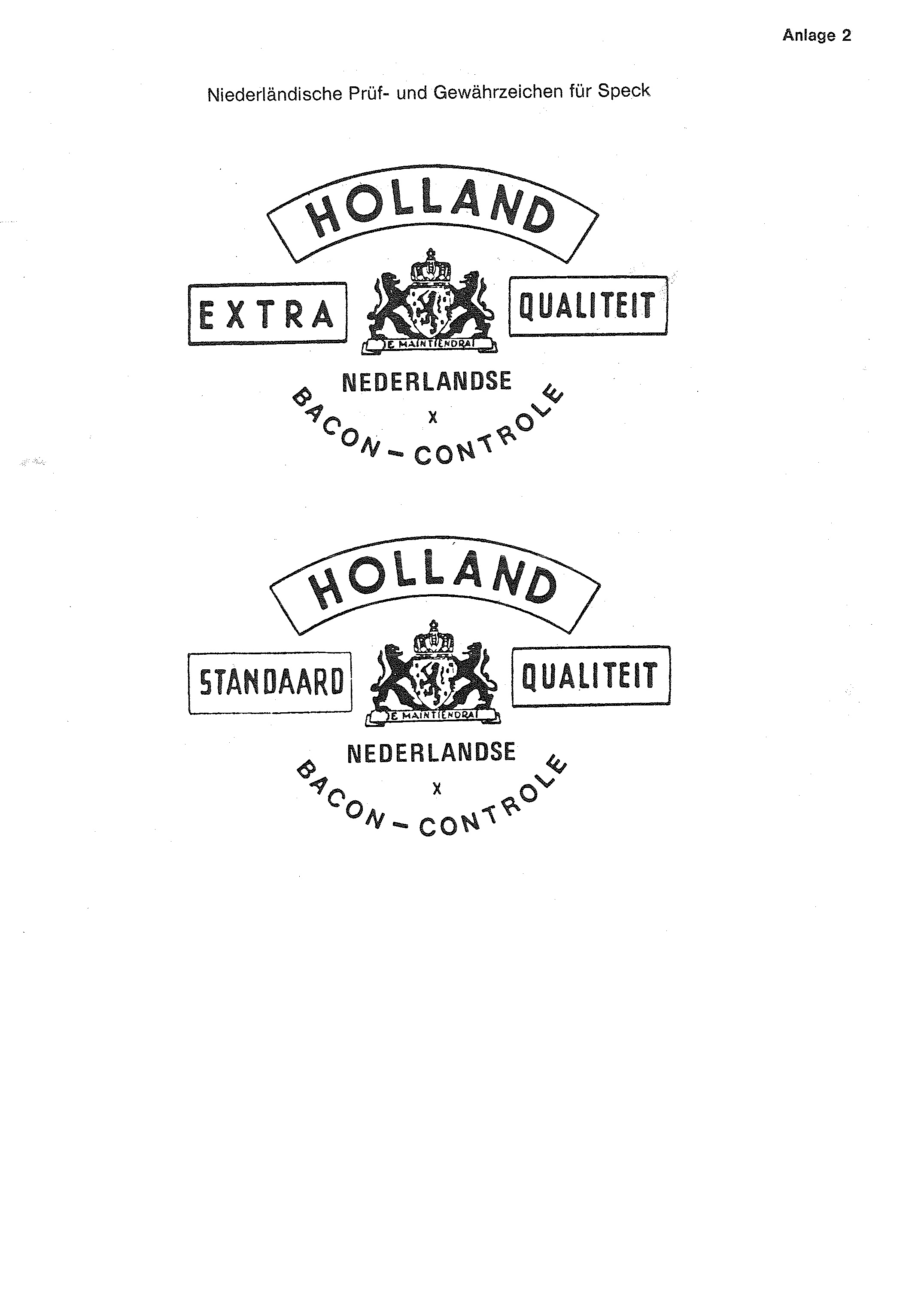 Niederländische Prüf- und Gewährzeichen für Speck