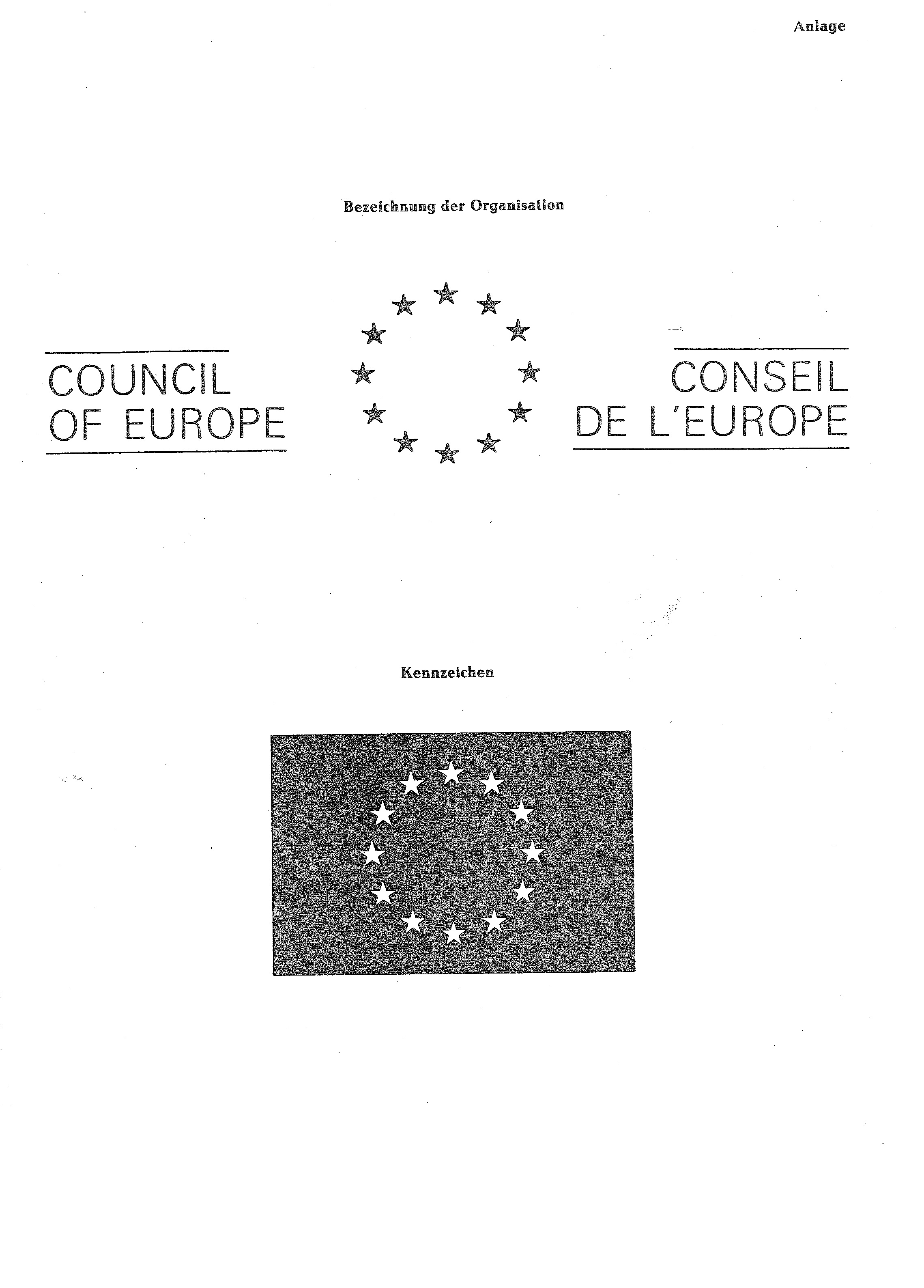 (1) Auf Grund des § 4 Abs. 2 Nr. 3a des Warenzeichengesetzes in der Fassung der Bekanntmachung vom 2. Januar 1968 (BGBl. I S. 1, 29) wird bekanntgemacht, daß die Bezeichnung und das Kennzeichen des Europarates (Anlage) von der Eintragung als Warenzeichen ausgeschlossen sind.