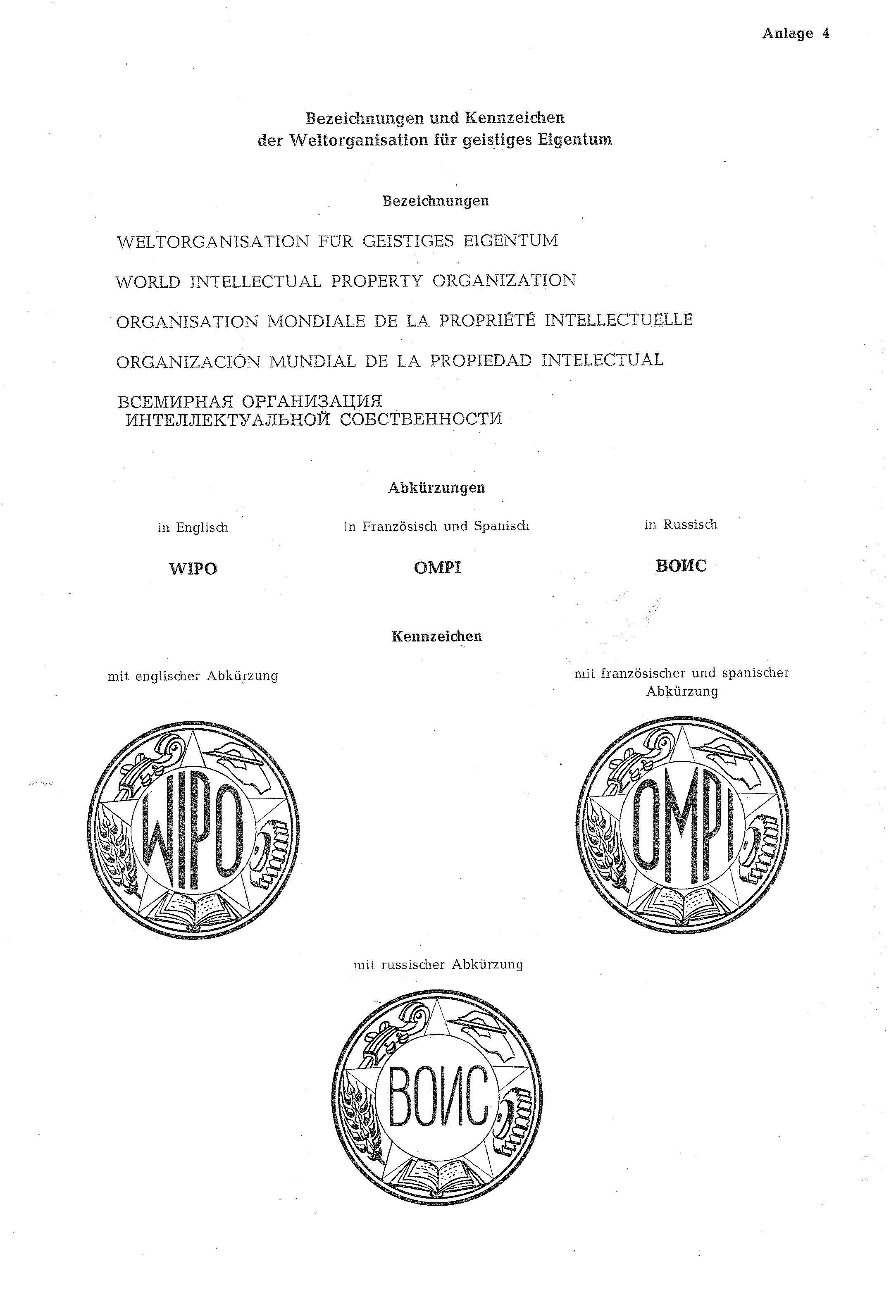 Bezeichnungen und Kennzeichen der Weltorganisation für geistiges Eigentum